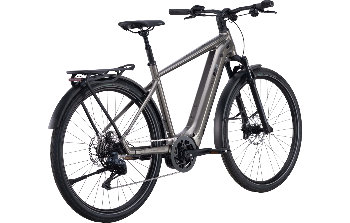 Als sportlicher Allrounder ist das Cresta eGiro GT auf ausgiebigen Touren genau so zu Hause wie im Alltag oder beim Pendeln. Ein Gelsattel sorgt für hohen Fahrkomfort. Ergonomisch geformte Lenkergriffe verhindern Ermüdungserscheinungen in den Händen. Gabel und Sattelstütze sind gefedert, Unebenheiten auf der Fahrbahn schlagen nicht auf Muskulatur und Knochen durch. Breite Reifen vermitteln ein entspanntes Fahrerlebnis und sorgen gleichzeitig für hohe Fahrsicherheit. Die Pneus sind breiter als Tramschienen und rollen einfach über sie hinweg.