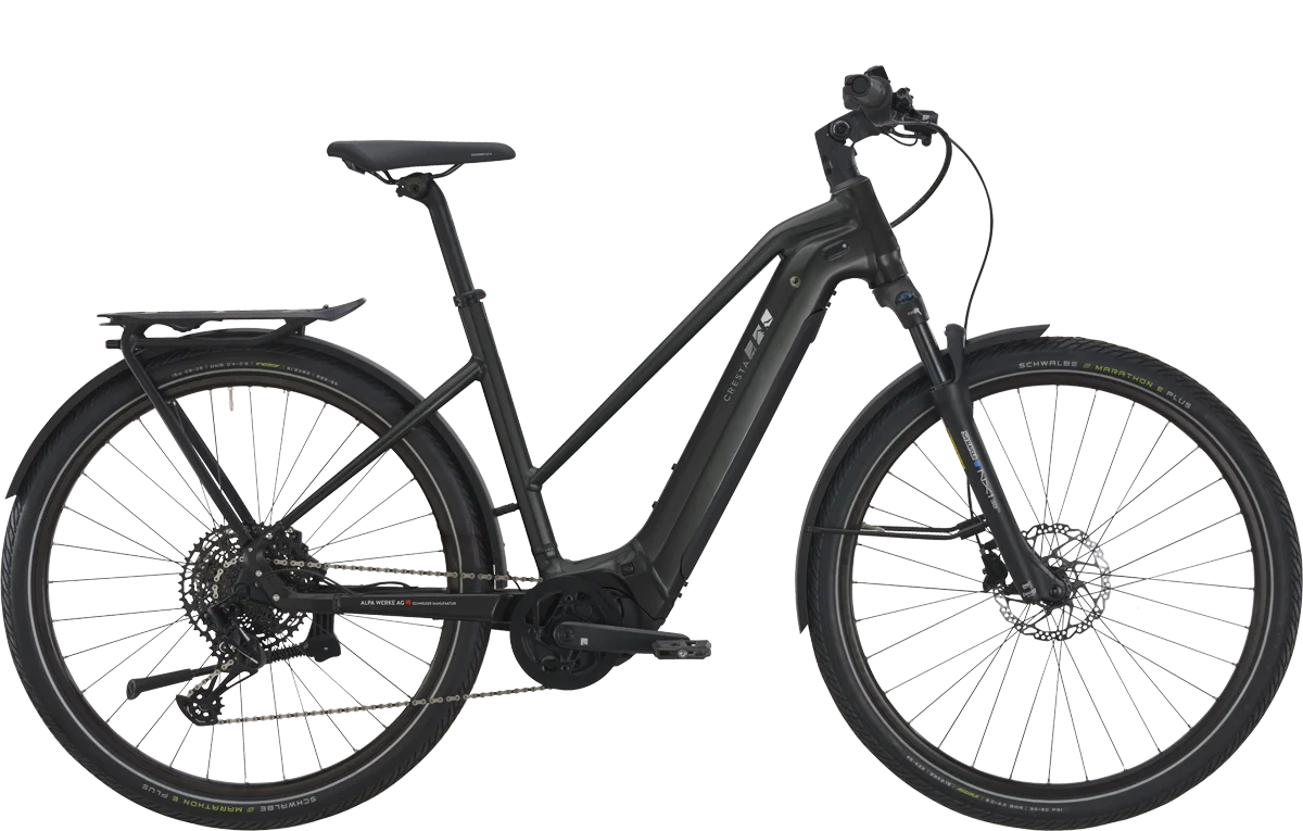 Als sportlicher Allrounder zum günstigen Preis ist das Cresta eGiro ST auf ausgiebigen Touren genau so zu Hause wie im Alltag oder beim Pendeln. Ein Gelsattel sorgt für hohen Fahrkomfort. Ergonomisch geformte Lenkergriffe beugen Ermüdungserscheinungen in den Händen vor. Die Federgabel verhindert, dass Unebenheiten auf der Fahrbahn auf Muskulatur und Knochen durchschlagen. Breite Reifen erhöhen den Fahrkomfort weiter und sorgen gleichzeitig für hohe Fahrsicherheit. Die Pneus sind breiter als Tramschienen und rollen einfach über sie hinweg.